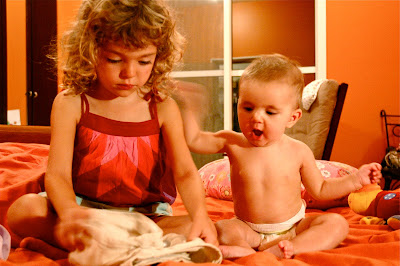 Here we are before baths, and Kaia is teaching me how to fold my shorts.